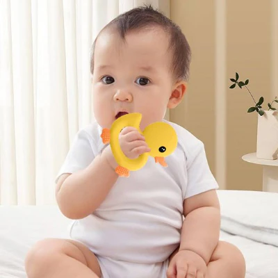 Anneau de dentition bébé en silicone – Canard apaisant dès 3 mois