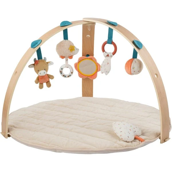Simple à monter et à transporter, l’arche d’éveil en bois s’adapte parfaitement à différents environnements, que ce soit à la maison ou en déplacement. Placée sur un tapis d’éveil ou directement sur le sol, elle offre à bébé un espace sécurisé pour s’amuser et découvrir. De plus, son entretien est facile : un simple chiffon humide suffit pour nettoyer la structure en bois.
