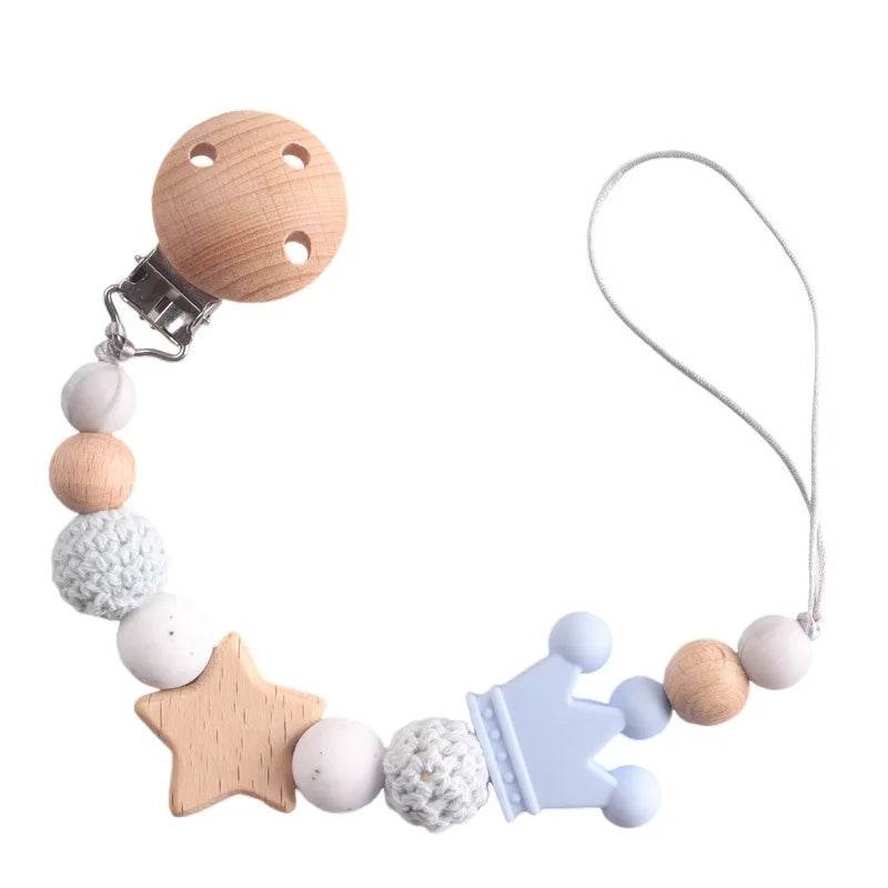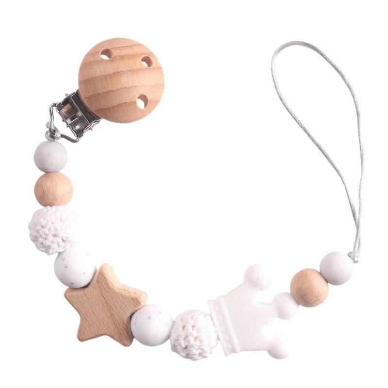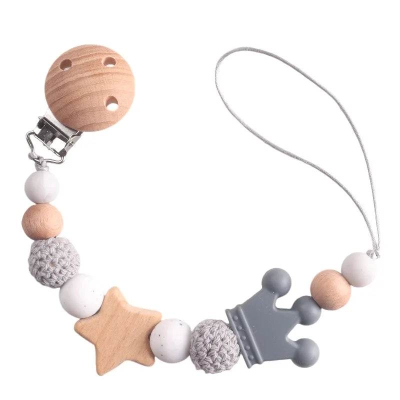 Attache-tétine silicone et bois – Style mignon