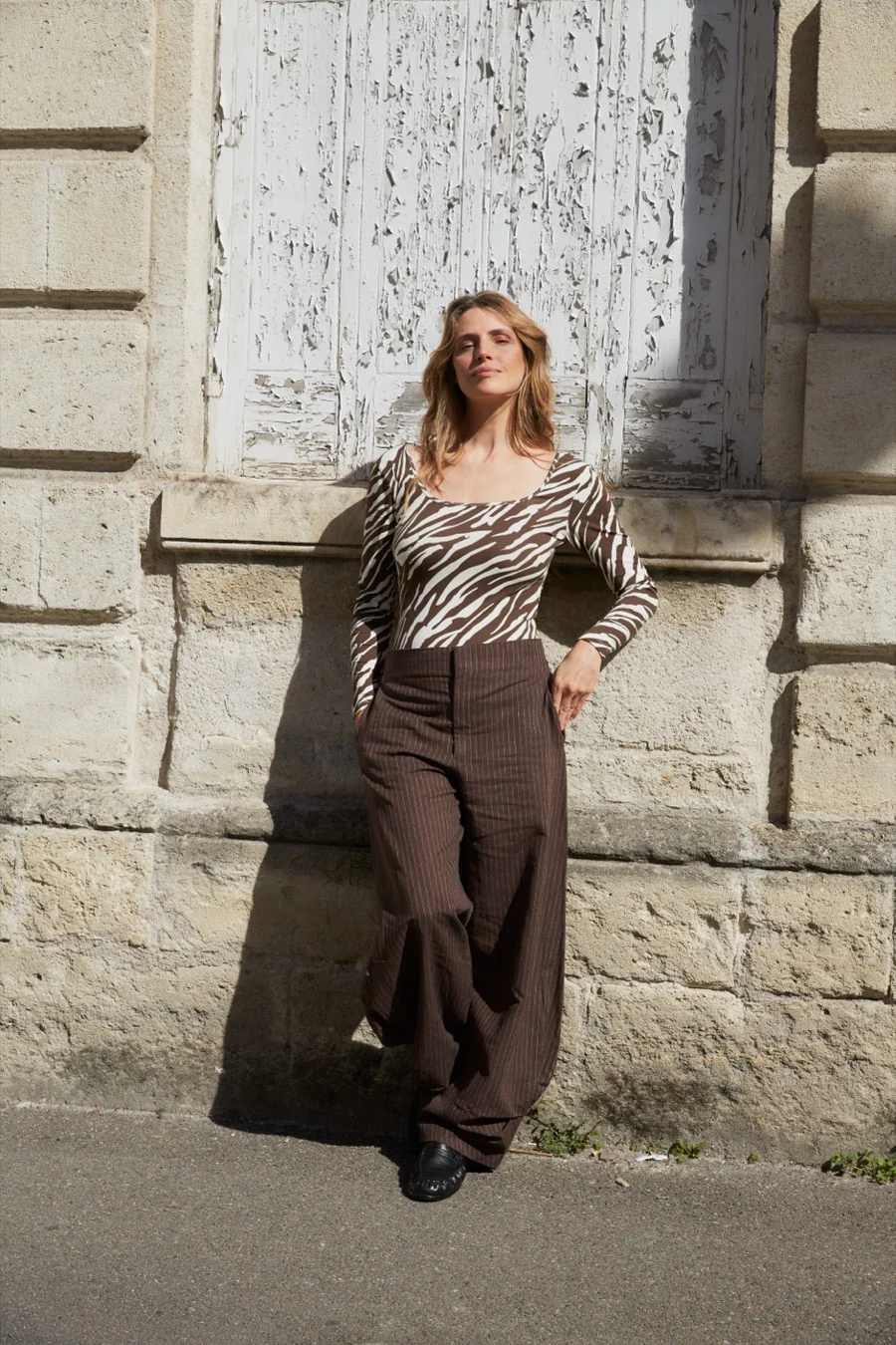 Conseils de taille : Pour ce body non allaitant, coupe ajustée, nous vous conseillons de prendre votre taille habituelle.Le jersey en mélange coton et élasthanne est très souple et agréable au porté.Ce modèle peut s’adapter à l’évolution d’une grossesse par son jersey souple avec élasthanne. Description :•Body •Jersey doux et souple•Impression all over zèbre•Coloris marron […]