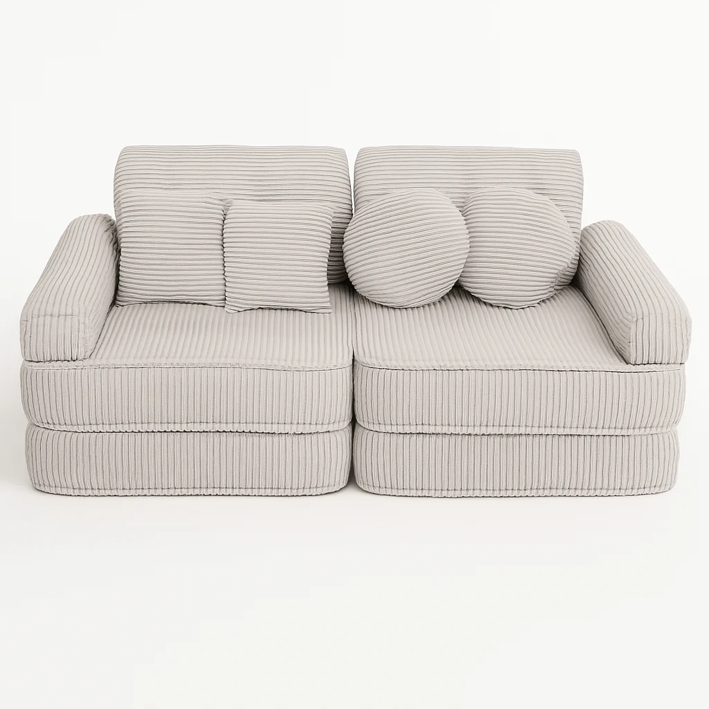 • 10 éléments modulables pour créer fauteuil, lit d’appoint ou aire de jeu.