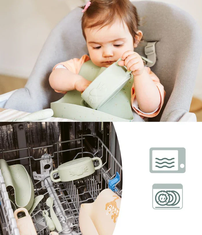 Ce coffret accompagne la progression de votre enfant, de ses premières découvertes alimentaires à l’autonomie à table. Fabriqué en silicone alimentaire souple, il est robuste et facile à nettoyer, compatible lave-vaisselle.