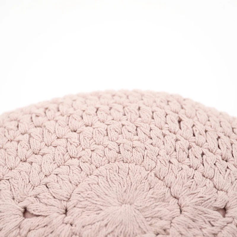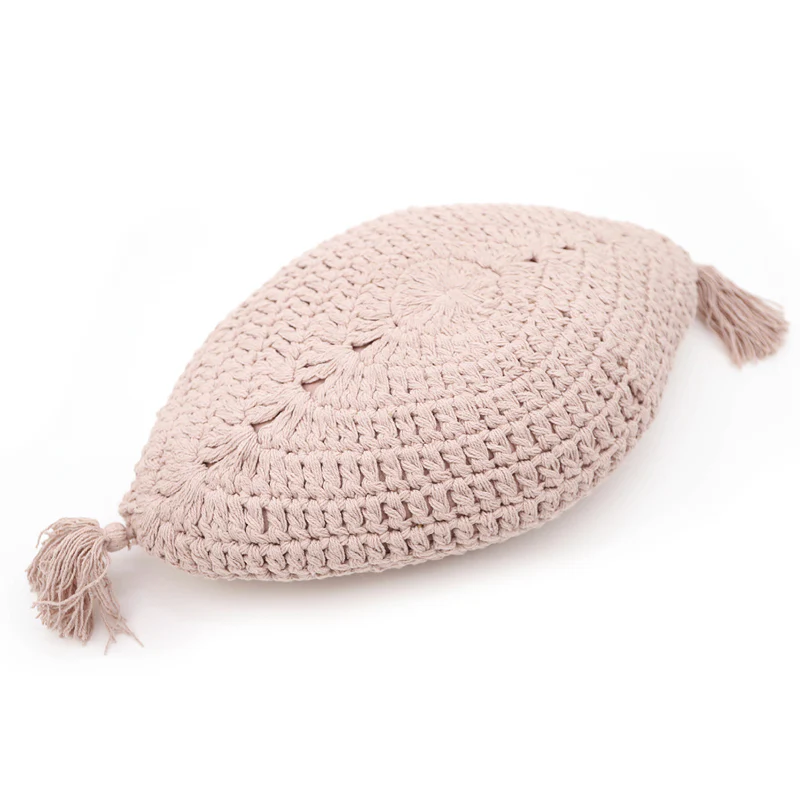 Coussin bohème coton crochet PLUME ROSE NUDE
