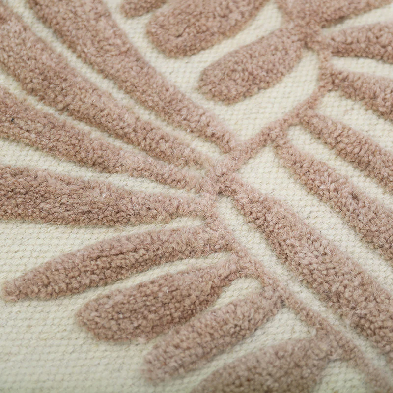 Minerva est une décoration murale originale et pleine de délicatesse. Son motif végétal rose nude est réalisé en relief sur un fond tissé en laine dans un coloris naturel écru.