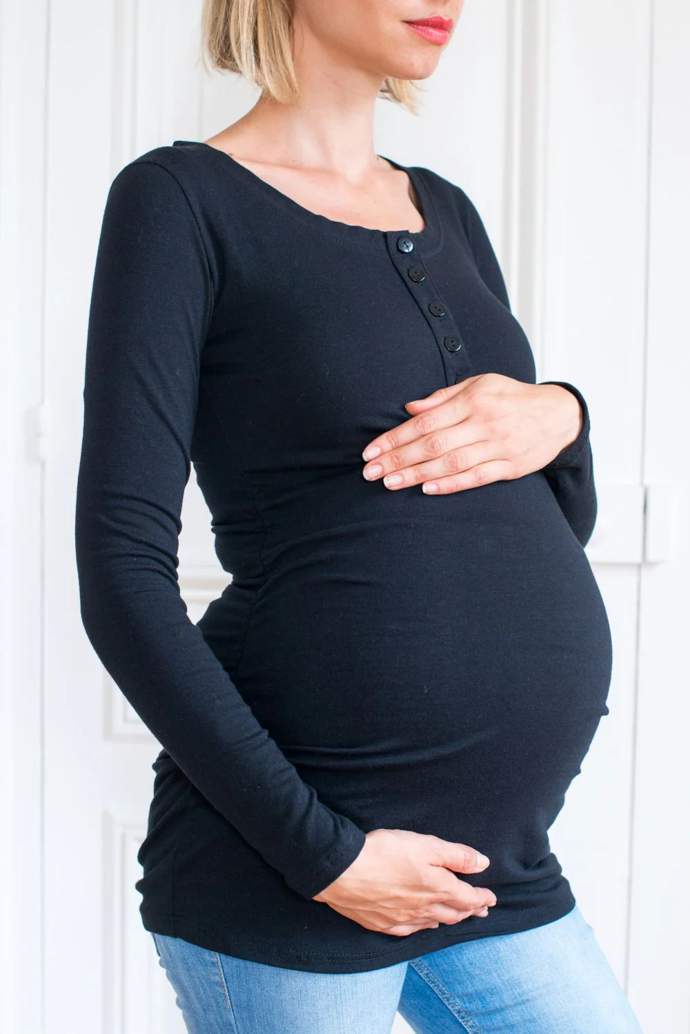 Le top de grossesse et d’allaitement en coton Elise, à manches longues et avec des boutons sur le décolleté sera le vêtement idéal pour tous les jours. Il deviendra un allié incontournable en attendant bébé, mois après mois. En coton, il est dans une matière souple ce qui le rend confortable et agréable à porter. Il est en coton donc dans une matière naturelle et confortable. Votre petit ventre sera bien emmitouflé et protégé dans ce haut si doux et extensible. Vous pourrez porter ce top de maternité également après votre accouchement. En effet, les boutons sur le devant le rendent parfait pour l’allaitement tout en élégance. Ce top dédié aux femmes enceintes et aux jeunes mamans est disponible en noir, bleu marine, à rayures bleues et blanches et en blanc. Attention, le haut Elise taille petit, nous vous conseillons de prendre une taille au dessus de votre taille habituelle.