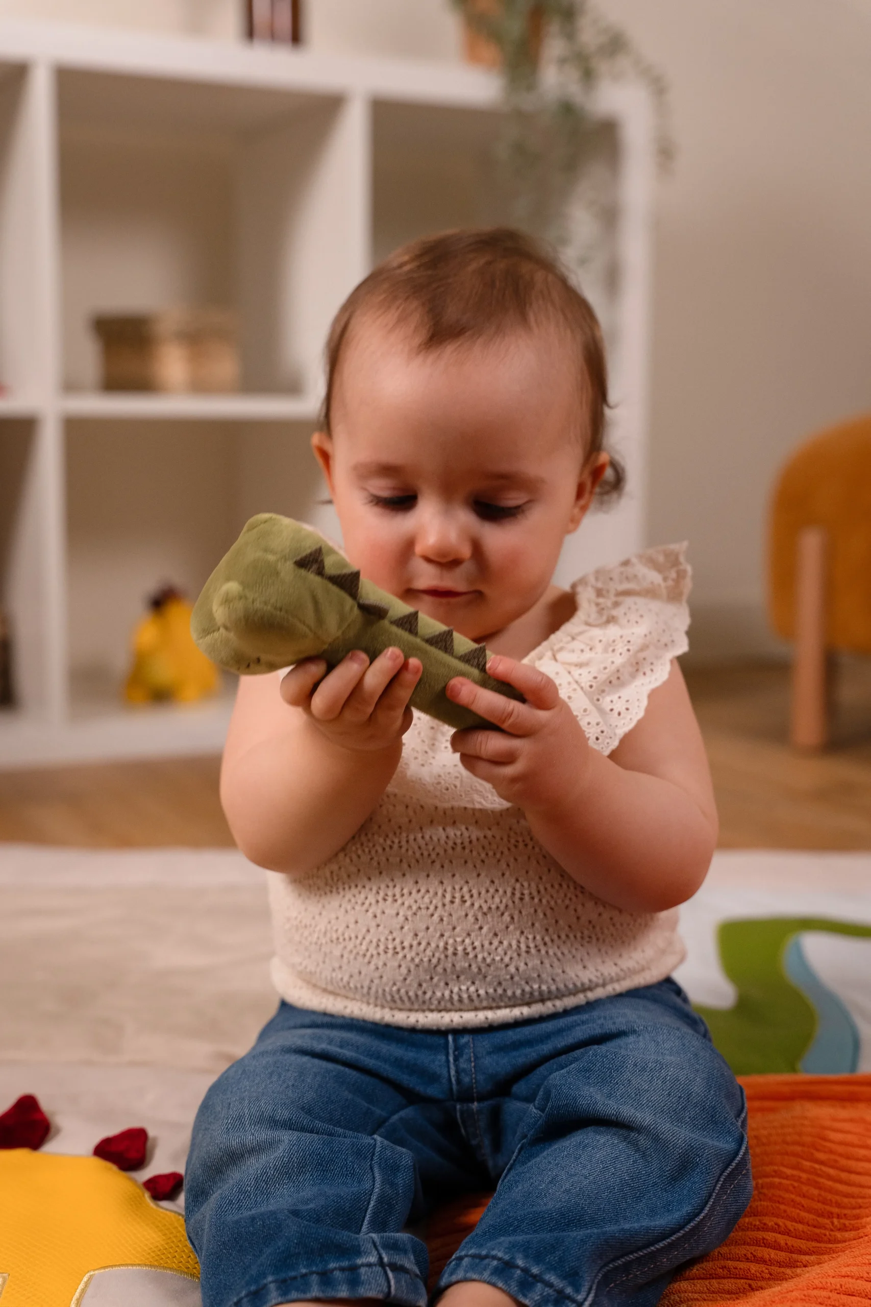 Le hochet pouêt Rex le Tyrannosaure est jouet d’éveil multisensoriel pour éveiller les sens de bébé !