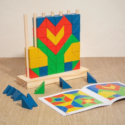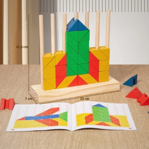 Jeu Montessori créatif en bois – Blocs de constructions logiques arc-en-ciel pour enfants de 3 à 7 ans