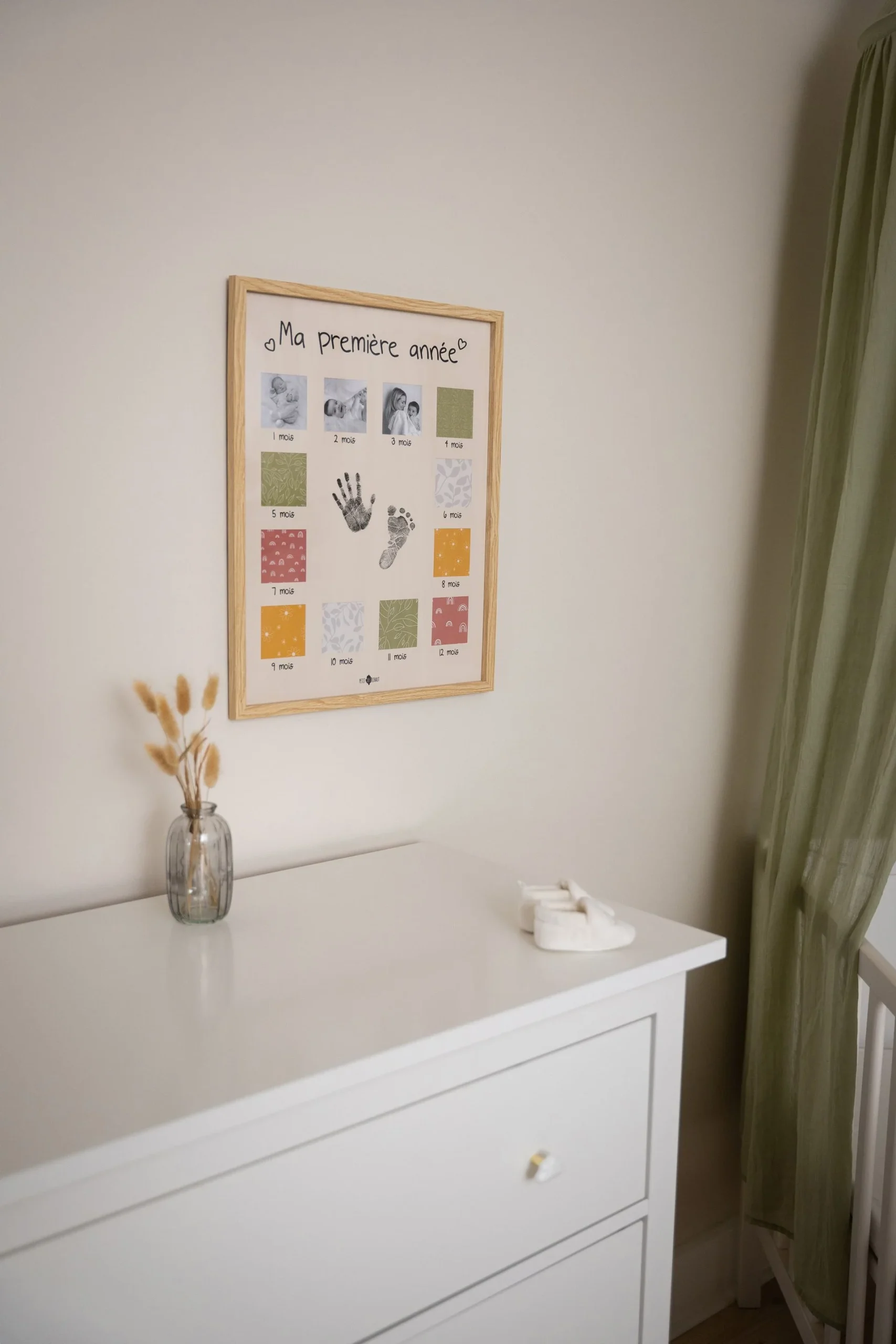Le Cadre « Ma première année » permet de suivre le développement de bébé mois par mois et d’afficher fièrement les photos de son évolution sur un an.