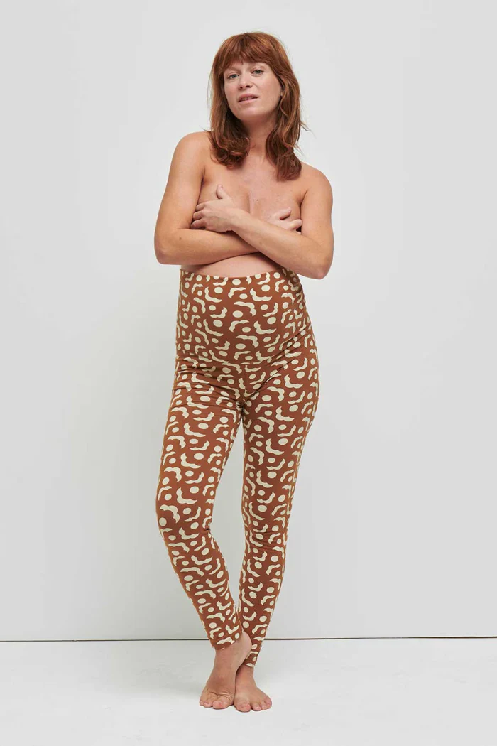 Son imprimé géométrique graphique camel apporte une touche chic et tendance à vos looks maternité. Idéal au quotidien, il se porte avec un pull doux pour un style cosy, une tunique longue pour un look féminin ou un sweat pour une allure plus décontractée. Sa coupe près du corps met discrètement la silhouette en valeur tout en restant ultra confortable.