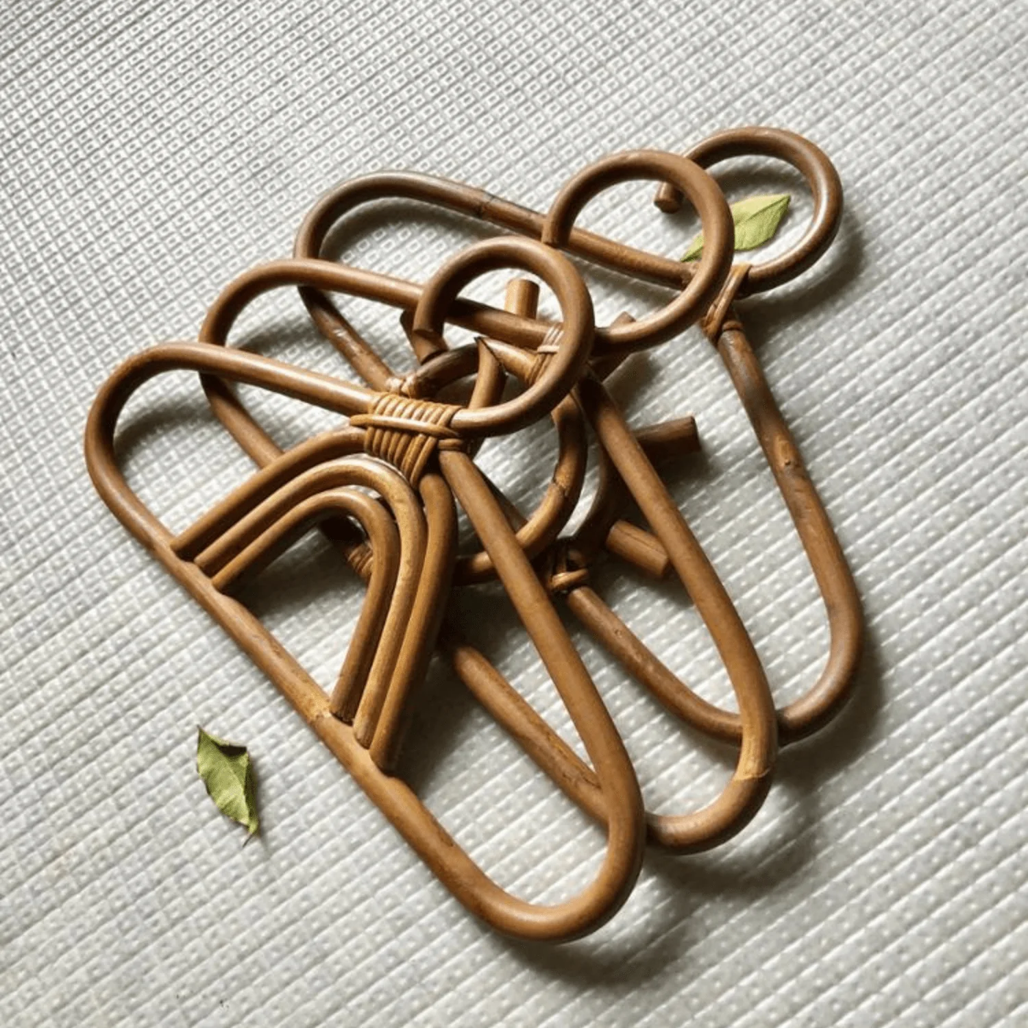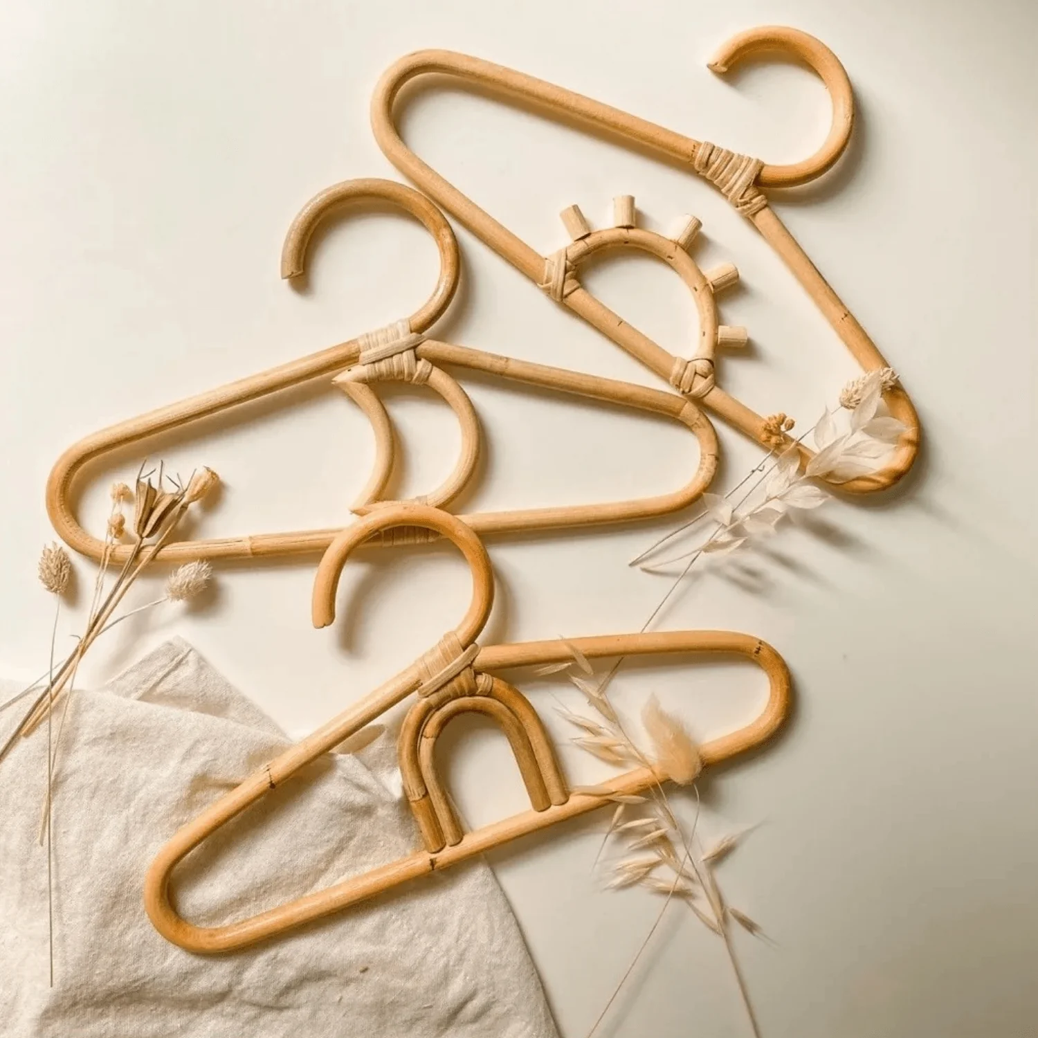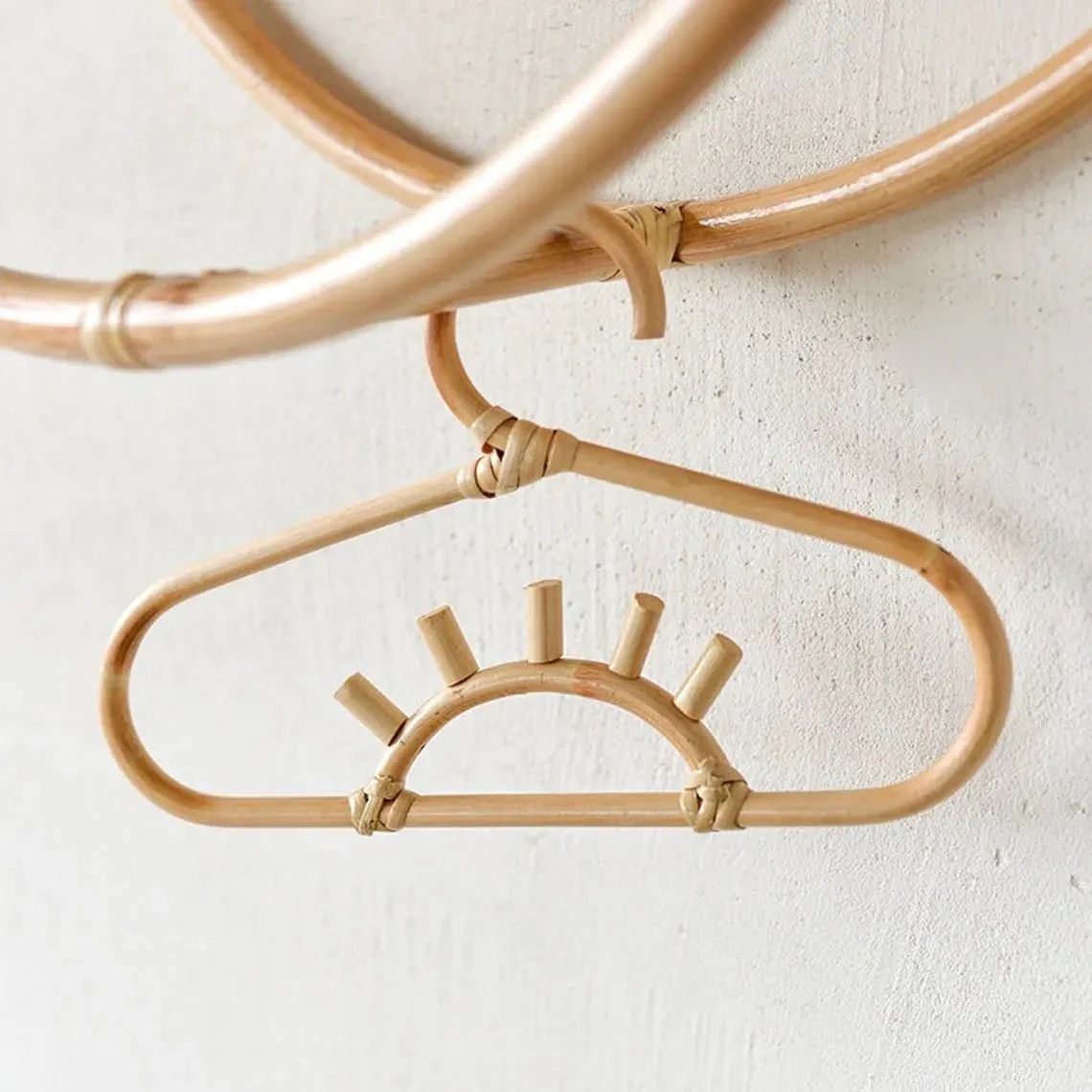 Leur structure délicatement courbée en rotin naturel rappelle l’aspect chaleureux de l’osier tout en offrant une finition douce et esthétique. Ils sont aussi beaux qu’utiles : que ce soit dans une chambre d’enfant au style bohème, un dressing naturel ou accrochés en décoration dans une entrée, ces cintres artisanaux font toujours leur effet.
