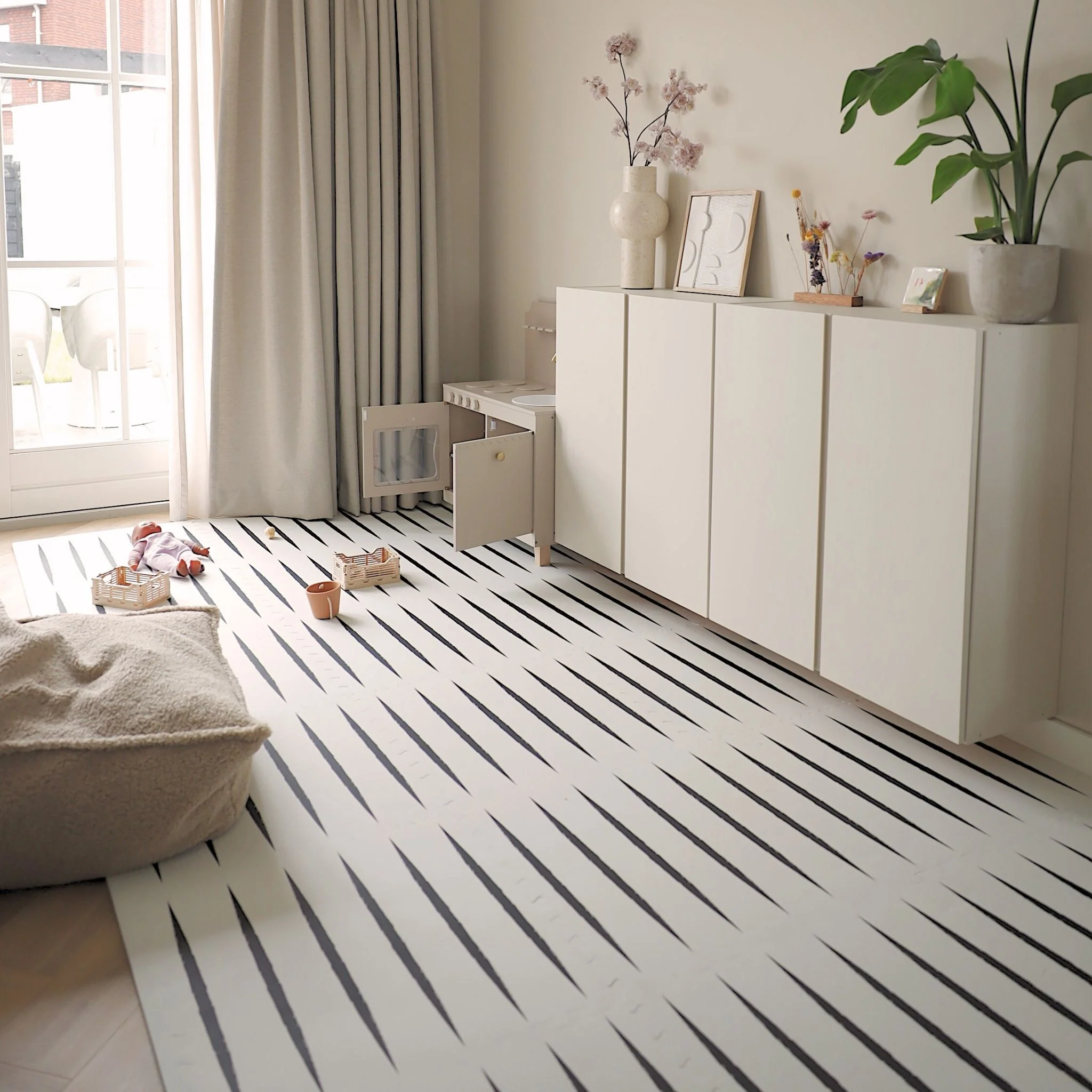 Avec son design, le tapis de jeu s’accorde à la décoration d’intérieur sans l’infantiliser. Conçu de pièces de puzzle, il est facile à ranger ou même à agrandir.
