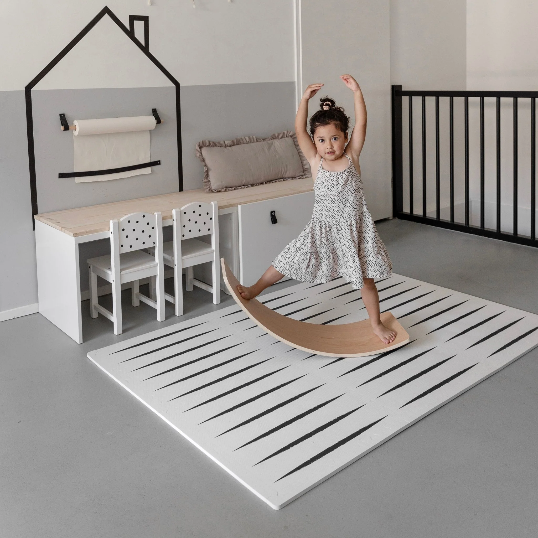 Le tapis offre une belle surface de jeu souple et hygiénique pour le développement de la motricité, se retourner, s’asseoir, ramper et marcher. Le tapis garde son utilité dans le temps et s’utilise dans le coin lecture ou pour des séances yoga en famille.