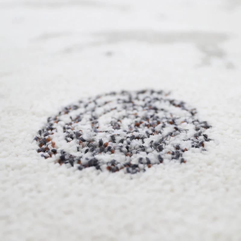 YUHNA, un tapis au design délicat et aux tons neutres idéal pour réussir une déco naturelle dans la chambre de vos enfants. Ce tapis a été confectionné à partir d’une fibre de polypropylène recyclée à 26% afin d’arriver à un produit respectueux de l’environnement ! La matière innovante de ce tapis offre une brillance et un aspect laineux à ce dernier. Au design évoquant les peintures rupestres, sobre et élégant, ce tapis moelleux et confortable est idéal pour la chambre enfant !